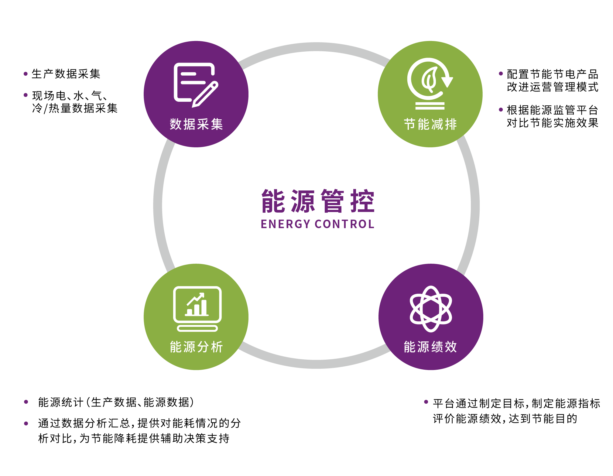 在国家双碳目标的战略背景下,科学的能源管理是各企业实现优化资源配置、合理利用能源、绿色可持续发展的重要措施。建立集中监控的工业企业能源管理系统,对电力、燃气、水等各分类能耗数据进行采集、处理,通过能源计划,能源监控,能源统计,能源消费分析,重点能耗设备管理,能源计量设备管理等多种手段,使企业管理者对企业的能源成本比重,发展趋势有准确的掌握,提升企业能源系统的治理水平。